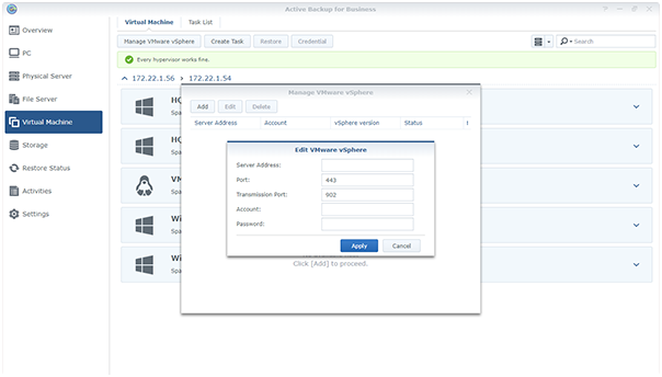 只需將數(shù)據(jù)從物理服務(wù)器遷移到虛擬平臺(tái)(如 Synology VMM 和 VMware vSphere),即可應(yīng)對(duì)意外中斷或作為升級(jí)測(cè)試環(huán)境。 -